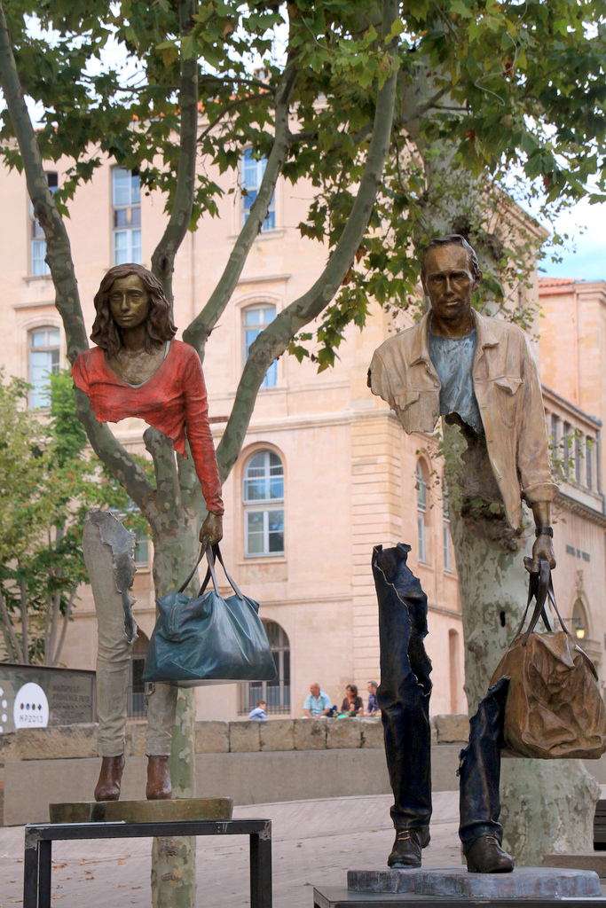 “Les voyageurs“, una delle sculture di Bruno Catalano presenti nelle strade di Marsiglia e dedicate agli emigrati.